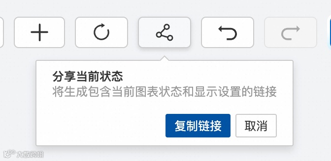 分享功能允许用户将当前视图状态(包括筛选条件、显示配置、视图位置等)生成为一个 URL,用户可以将这个 URL 分享给团队成员。接收者打开链接后,会看到与用户完全相同的视图状态,这对于协作和问题沟通非常方便。