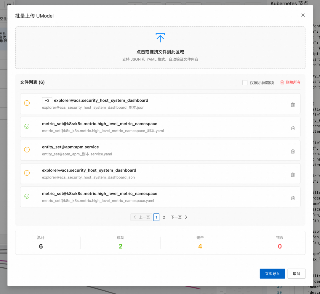 支持上传规范的 UModel 文件,包含 JSON 和 YAML 格式。