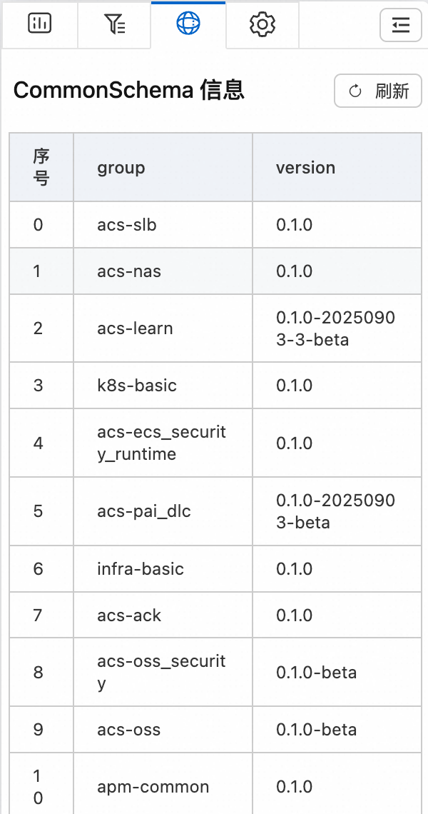 在阿里云可观测业务中,系统内置了一些标准化的 UModel 数据,这些数据作为公共 UModel(CommonSchema)默认存在于 Workspace 中。公共 UModel 数据以引用方式(CommonSchemaRef)配置,在查询时动态生成 UModel 实例,并在元素的 metadata 字段中附加 commonschemainfo 字段作为额外说明。