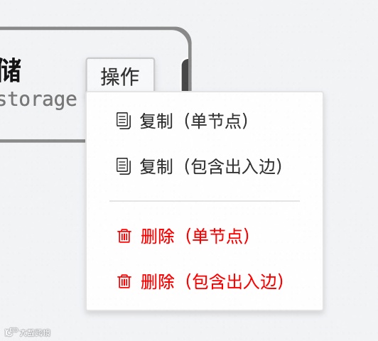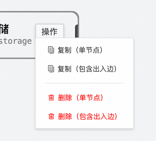 节点的操作菜单中还包含一些级联操作选项,这些选项允许用户对节点及其相关的边进行批量操作。例如,用户可能需要删除一个节点及其所有出边和入边,或者只删除出边而保留入边。这些操作在重构模型时特别有用,可以避免手动逐个删除边的繁琐过程。