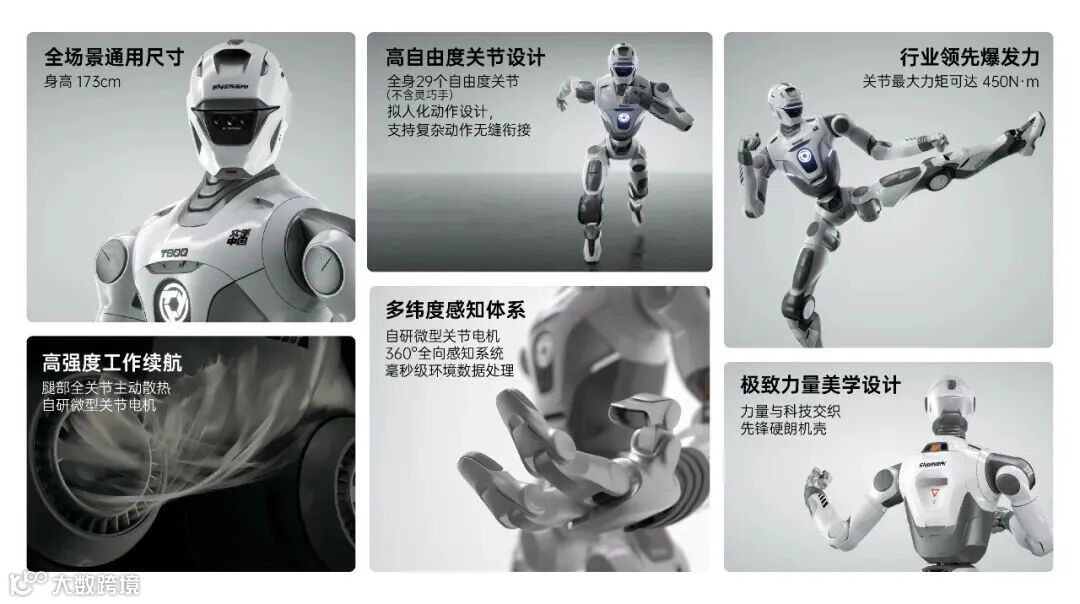 依托全栈自研核心技术,众擎T800旨在同身高段人形机器人中树立全域动态效能绝对王者。