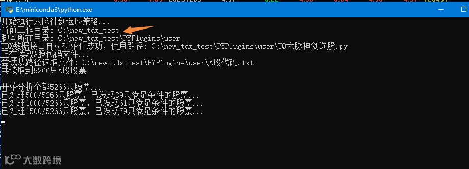 需要注意的是,内部执行时,工作目录是通达信根目录,所以在py文件中调用文件时,注意路径。