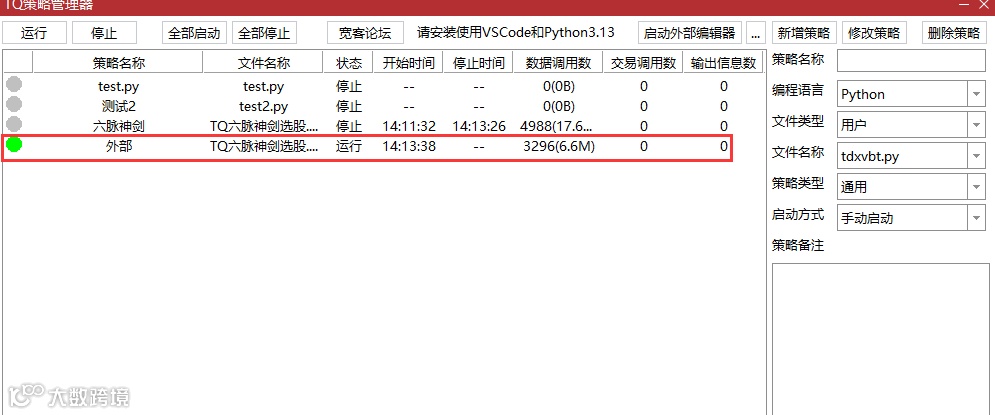 也在可以在外部IDE执行,但是必须先运行tdxw.exe,下图是在灵码IDE里执行。