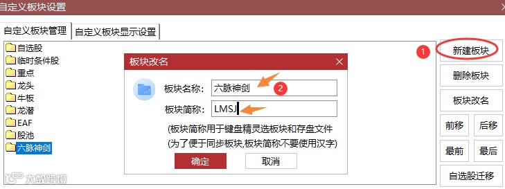 创建自定义板块 六脉神剑,产生LMSJ.BLK文件。