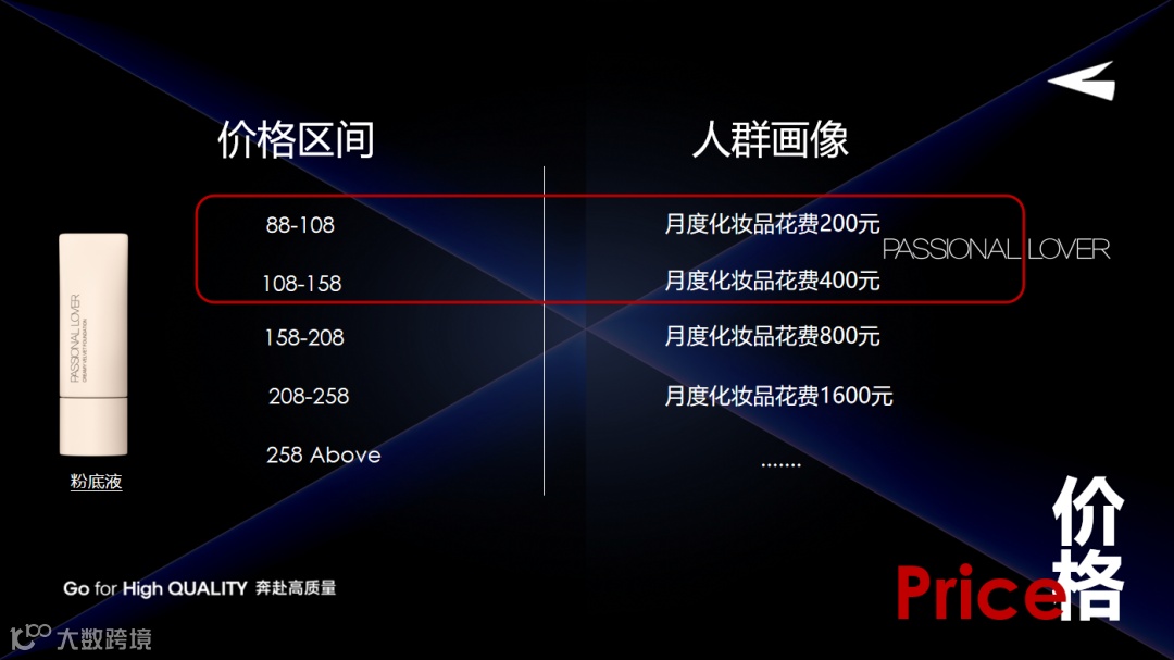 后来就发现当把粉底液的价格用不同区间区隔开,所面临的消费者是不一样的。比如当价格设置在88-108元时,这个群体的月均化妆品花费可能在200元左右。