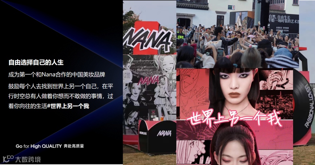 2023年我们还与Nana这个IP进行合作,这部动漫里的两个女孩,一个外表很酷但内心温柔,另一个外表可爱但内心坚韧,我们希望借助这次合作告诉大家,不管你是什么样子都值得被世界喜欢和尊重,前提是要先悦己、先自由。