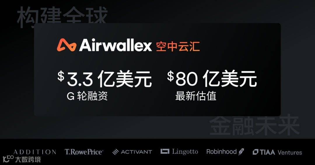 旧金山——全球领先的现代化企业金融平台 Airwallex 空中云汇(以下简称:空中云汇)宣布完成 G 轮融资,金额达 3.3 亿美元。本轮融资由 Addition 领投,T. Rowe Price、Activant、Lingotto、Robinhood Ventures 和 TIAA Ventures 共同参与。空中云汇估值升至 80 亿美元,较六个月前 F 轮上涨近 30%。资金将用于加速美国及全球重点市场拓展,并加大 AI 领域的人才招聘与产品研发投入。
