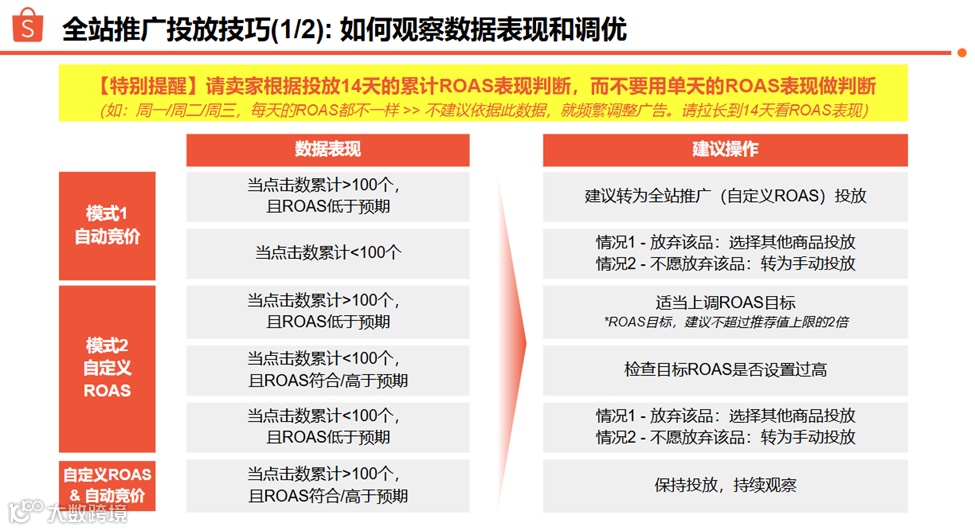 - 点击数<100,实际ROAS未达标:商品缺乏竞争力,建议停止投放。