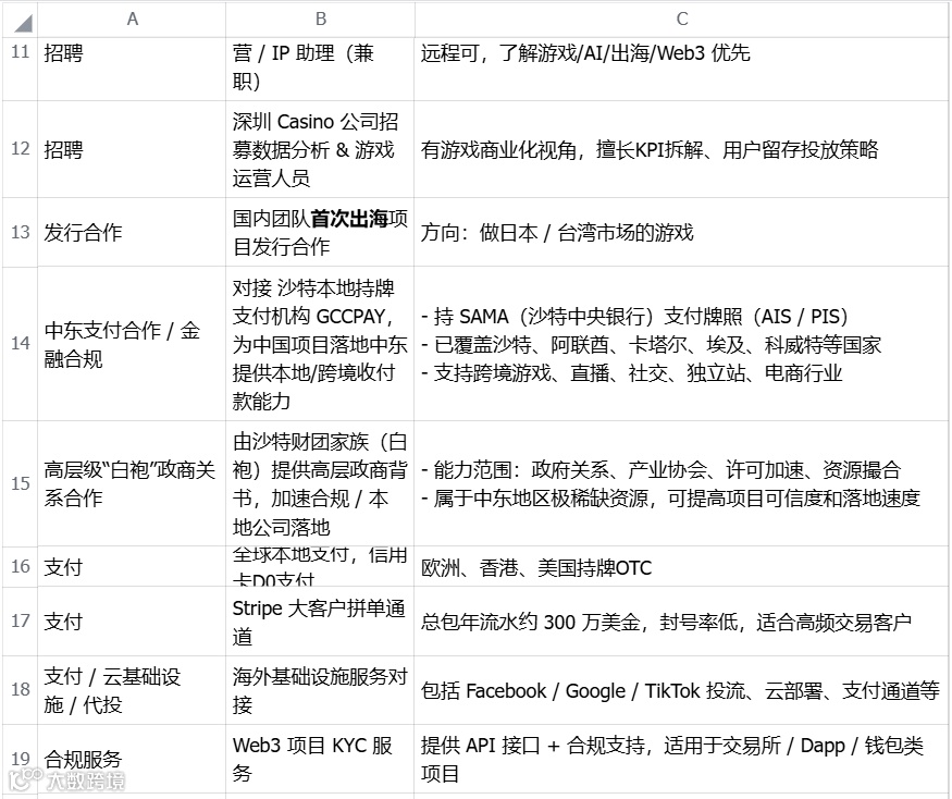 我们持续链接游戏、出海、Web3等领域的核心资源,现将需求开放对接。