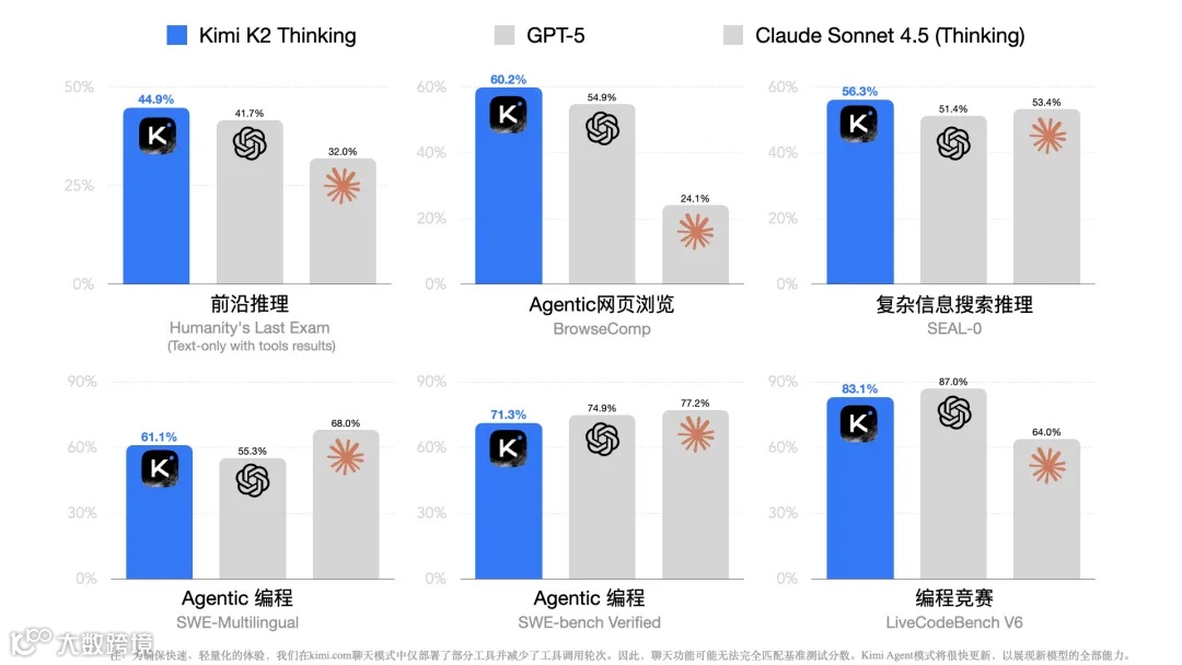 K2-Thinking 在 Agentic Tool Use (TAU) 榜单上的领先,标志着 AI 竞争已从“理论性能”转向“复杂任务的自主规划和执行能力”,这是智能体在真实世界中能否创造价值的关键 。