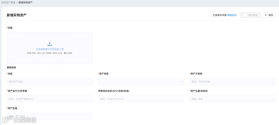 详细描述:上传资产图片、地理位置、SPV信息(如有)等。