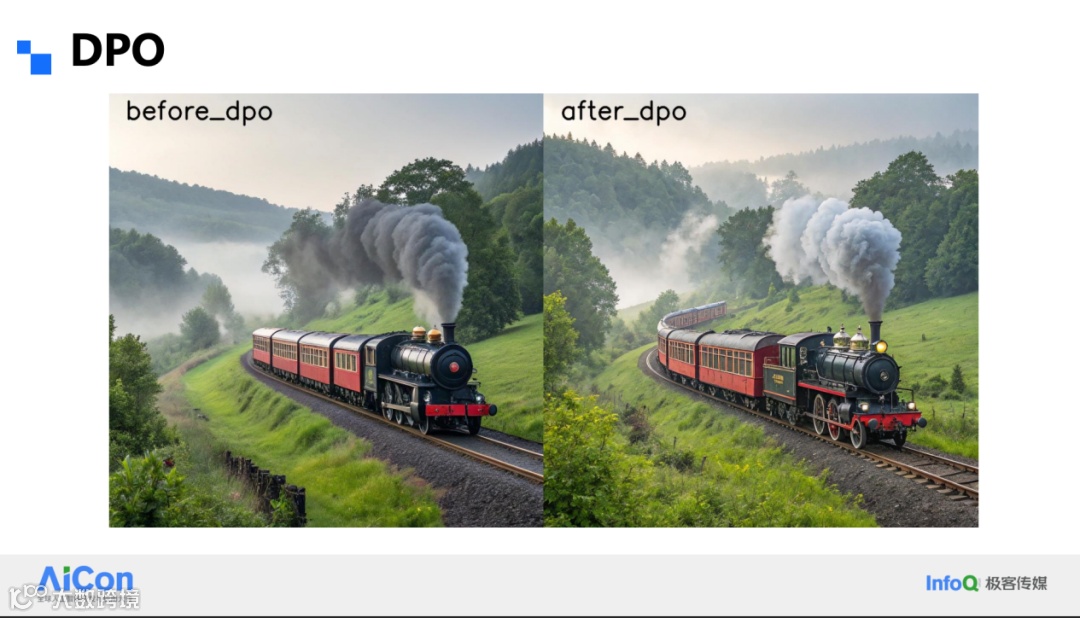后训练阶段我们简单跑了一版 DPO,画质和细节会再上一个台阶,说明对齐工作同样适用于 VAR 框架。