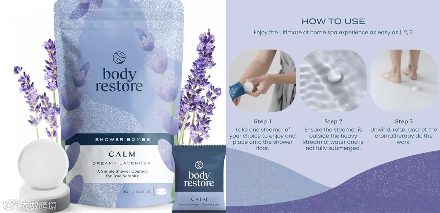 这是一款较为奇特的沐浴用香氛爆款个护产品,来自亚马逊热门身体护理品牌Body Restore,售价$29.99。奇特之处在于它的功效——在沐浴时提供长效香氛,类似home spa。使用方法是放于淋浴间的地板上,在沐浴过程中它会透过水和蒸汽蒸发,释放出香气,持续10-15分钟,达到芳香疗法的效果。与传统浴球相比,淋浴蒸汽片可在无浴缸的环境使用,更省时省水,没有残留物,无需后续清理也更省心。