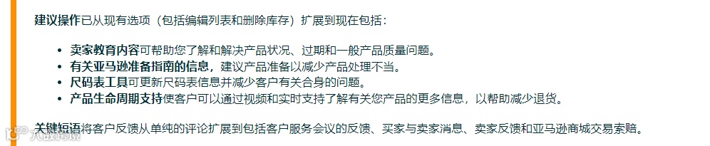 除了缩短部分产品退货时间,亚马逊还在美国站和德国站的客户之声仪表板上推出了两项新功能:推荐操作和关键短语。