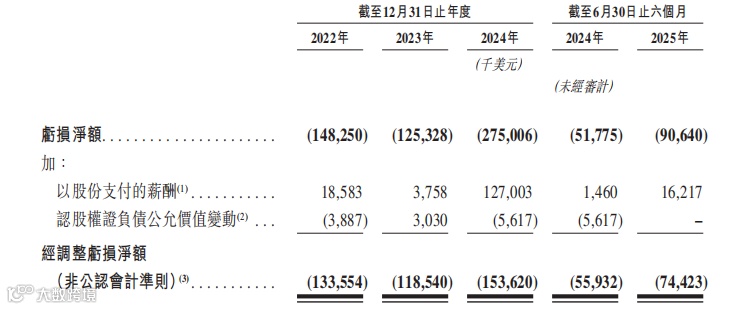2022-2024年小马智行的净亏损额分别为1.48亿美元、1.25亿美元、2.75亿美元,单是2024年的亏损金额便超过了公司三年半的合计总营收。此外,2025年上半年,小马智行净亏损同比扩大87%至0.91亿美元。