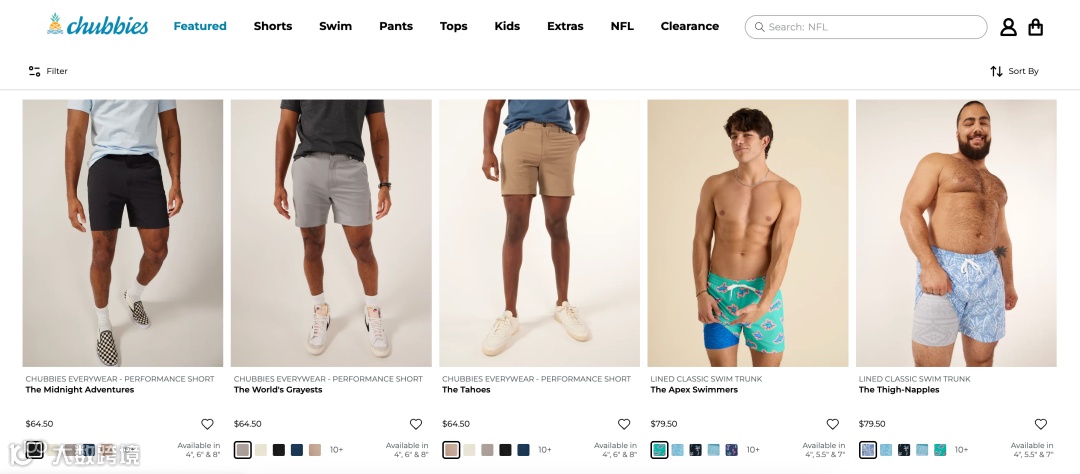 因此,一个美国品牌精准洞察到了这一空白——Chubbies,他们以短款复古短裤为切口,抓住了“短裤回潮”、“潮流+舒适”、“周末生活方式”的趋势风口,并取得了快速的增长。