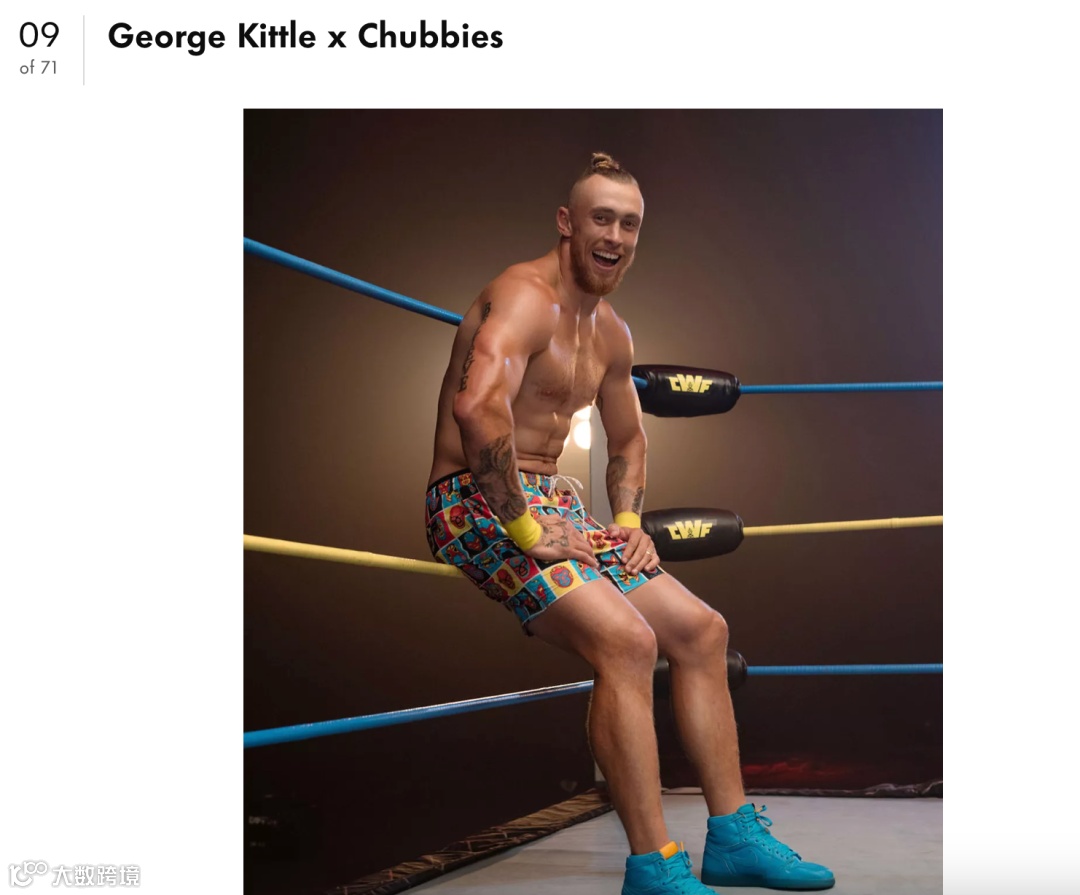 至于量级更高、项目受众更广的体育项目,Chubbies则会专门推出联名款,NFL明星George Kittle也是其中一个例子。