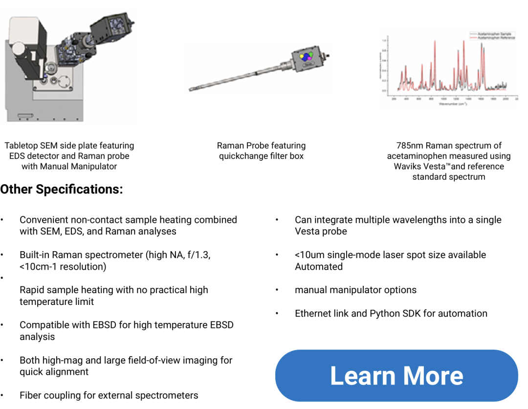 图3:集成拉曼-SEM系统规格和功能的综合概述,显示了组合分析方法的技术优势。