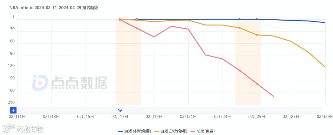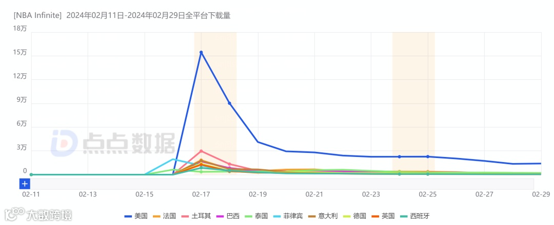 2024农历新年伊始,腾讯旗下国际游戏业务品牌Level Infinite以欧美为主要推广地区于海外上线了一款篮球体育游戏《NBA Infinite》。根据点点数据统计,游戏上线当日便登顶美国、法国、葡萄牙等多国免费榜,并于上线首月内在所属类别的免费榜中将排名维持在了前三之内。