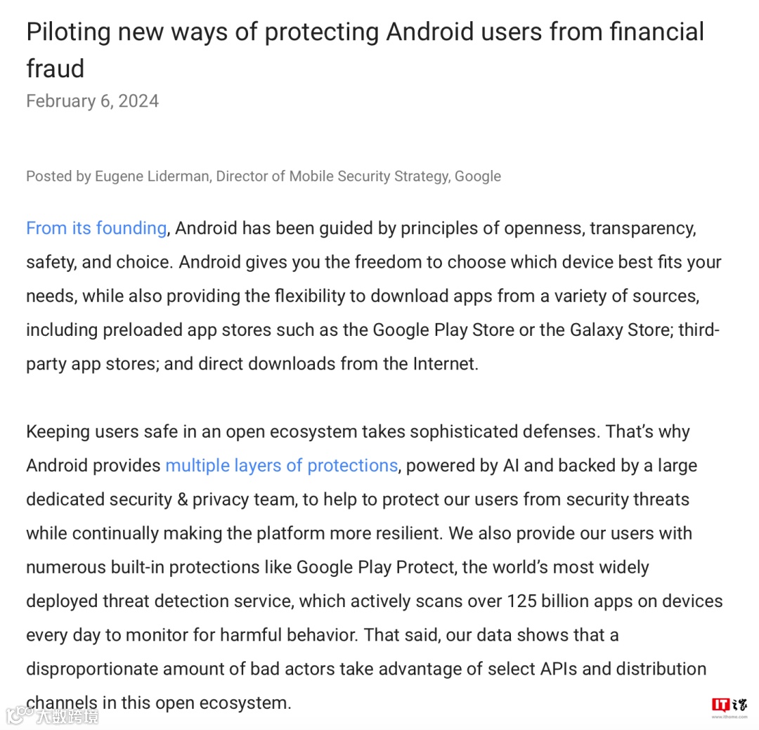 日前谷歌发布新闻稿,宣布将进一步加强这款应用的安全能力,主要针对“金融诈骗”方面进行“权限监控”项目优化。目前谷歌已经与新加坡网络安全局(Cyber Security Agency,CSA)合作,将率先在新加坡开始试点,陆续向其他市场推出相关应用更新。