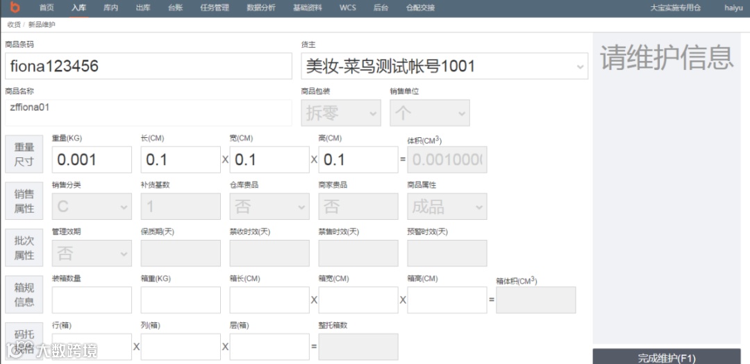 1. 商品信息在WMS端维护