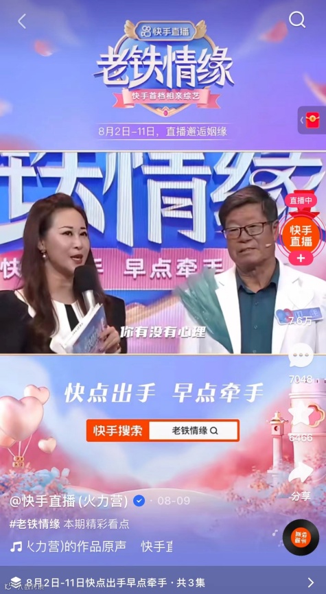 或许是看到了这片市场的潜力,近两三年来,快手和抖音一直在积极角逐中老年相亲市场的份额,力求赢得更多中老年消费者的信赖与喜爱。