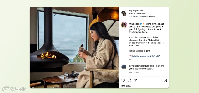 Instagram 影响者可以发布他们参观您的酒店或餐厅的信息,在他们的日常故事中使用您的产品,或者与您的品牌帐户合作以帮助其吸引新的关注者。