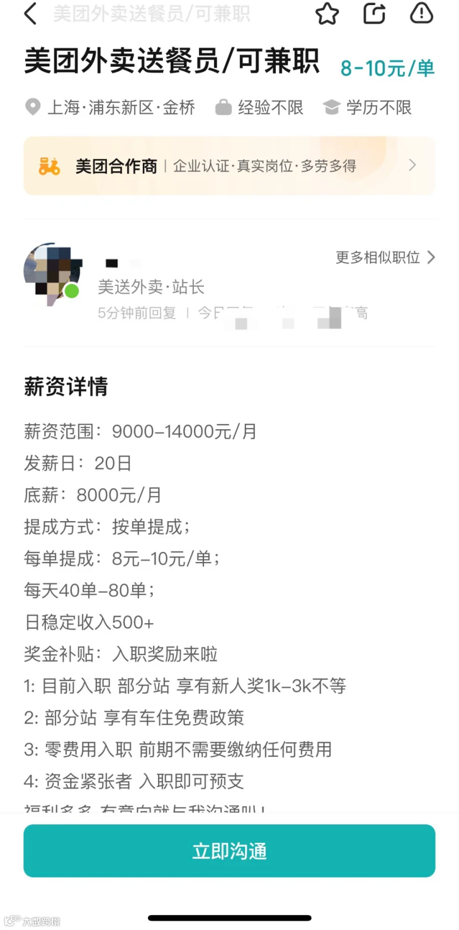 从外卖员收入来看,主编在招聘平台观察到,美团平台上海地区招聘外卖员薪资范围为9-10k/月,综合薪资平均在8-16k/月,订单量大,多劳多得,综合每单在5-12元。