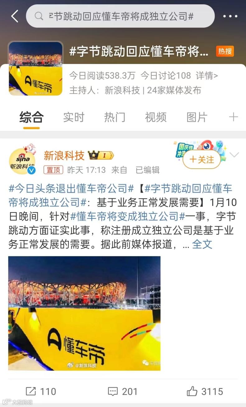值得注意的是,抖音内部曾讨论将懂车帝分拆上市,但还没有明确时间线。