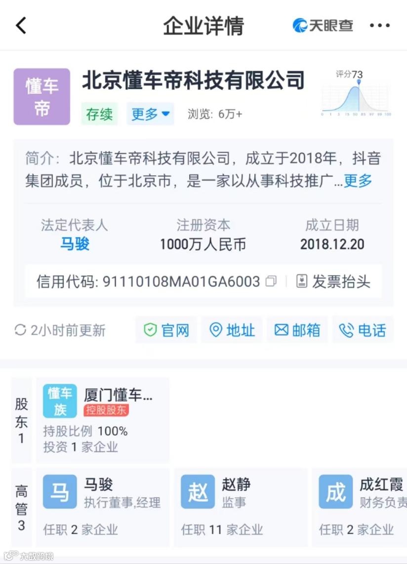 据悉,懂车帝成立于2017年,最早是抖音推出的一站式汽车信息与