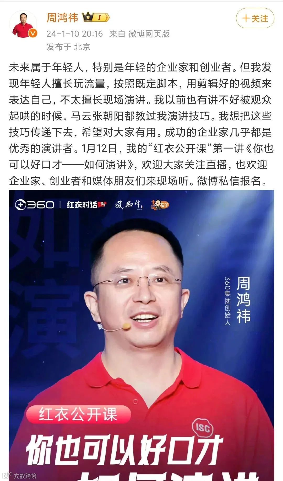 的确,曾经包括周鸿祎在内的众多企业家,都热衷于向年轻人分享自己的成功经验,开课讲座。但到了现在,年轻人反而成了他们的学习对象,这不由得令人感叹:时代变了。