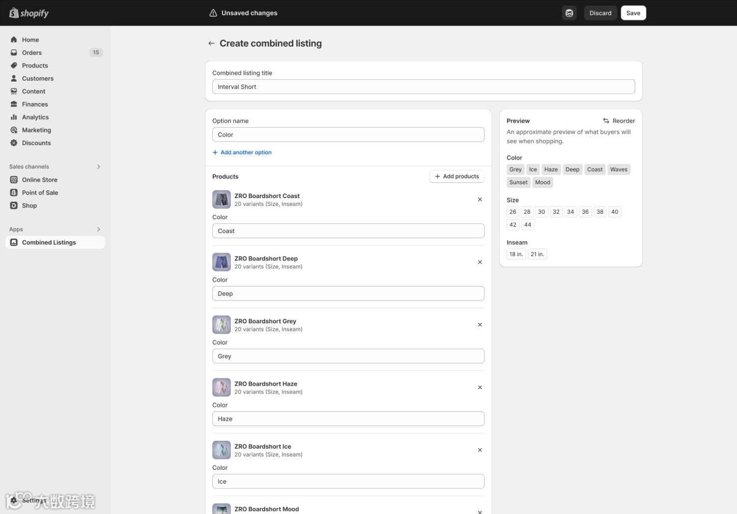 Shopify Combined Listings是由Shopify专为Shopify商家打造的免费应用。它帮助商家创建统一的产品列表,将一个产品的所有不同变体整合到一个集中的产品页面中。每个产品变体都可以拥有独特的图片轮播、描述性URL和发布控制功能。