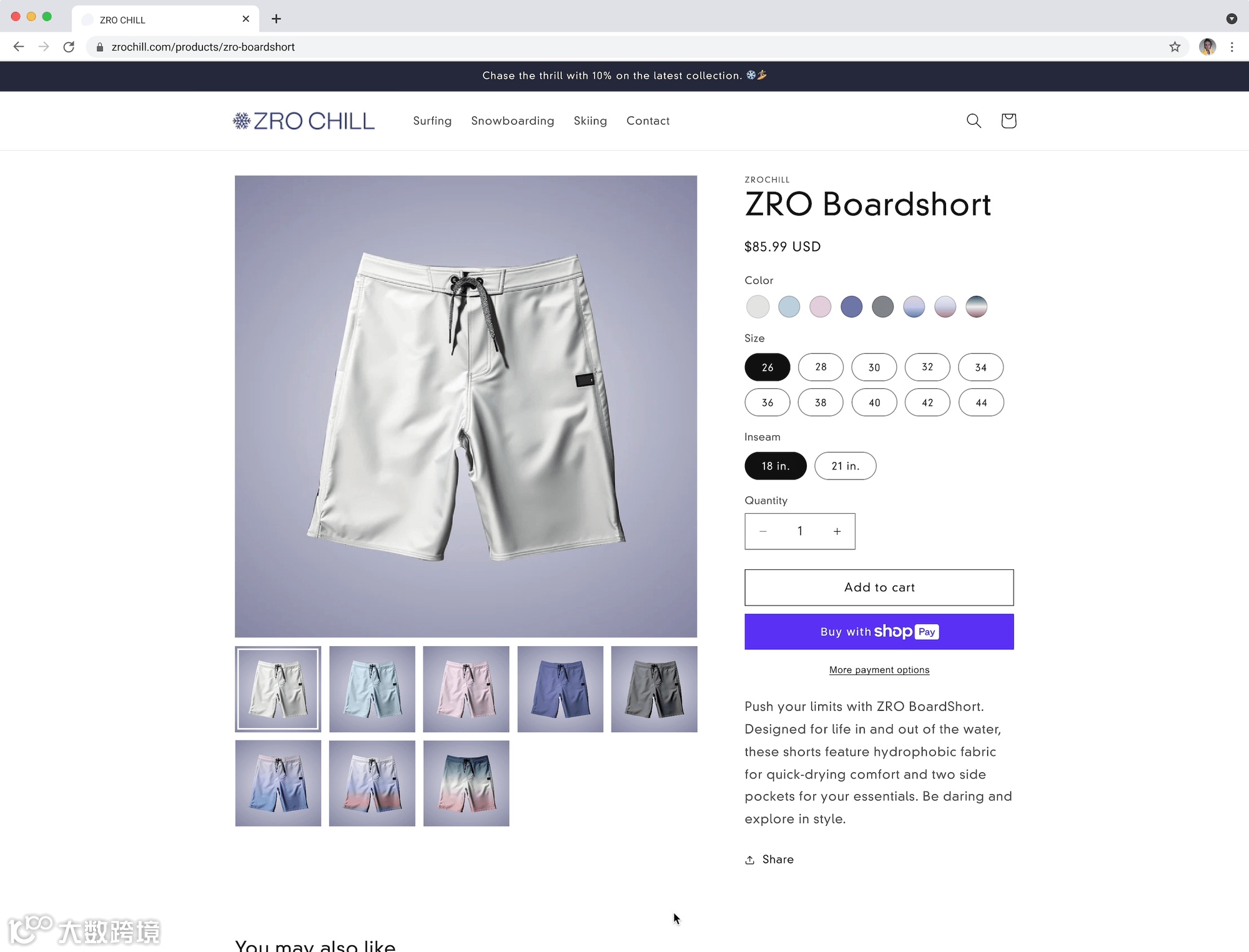 假设你经营一家服装店,你的热销短裤有8种颜色,但在产品列表页面上,每种配色只展示了一张产品图片。对冰蓝色短裤感兴趣的顾客,无法看到蓝色短裤的多角度图片,因此他们转化的可能性大大降低。这是一个巨大的销售机会损失。
