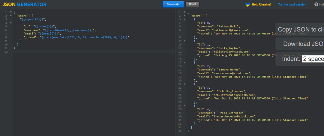 与此同时,JSON Generator 则非常适合测试 API 响应或在没有后端的情况下 mock 端点。