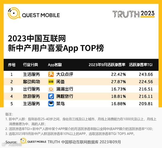 闲鱼入选2023中国互联网新中产用户喜爱App TOP榜 图源:QuestMobile