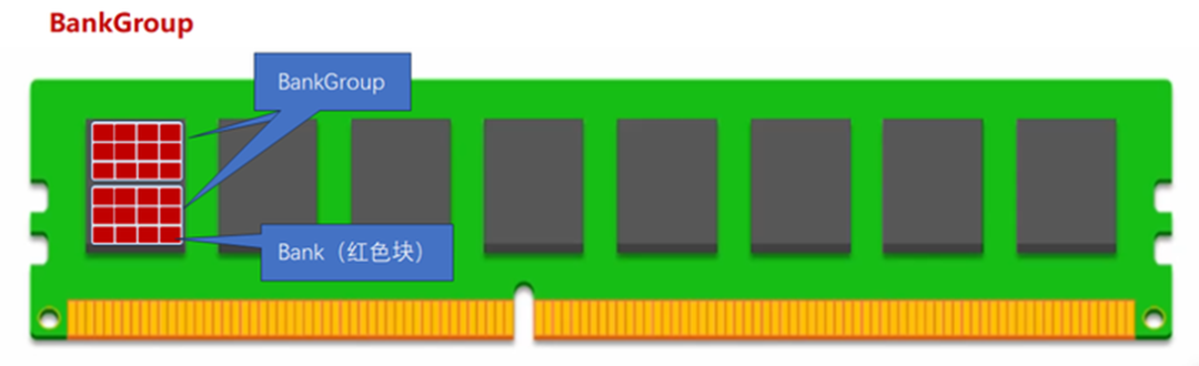 内存条上的黑块块,就是Chip,也叫颗粒。一个Chip中包含多个BG,一个BG包含多个Bank。就这么简单,内存系列5、6、7说明了为什么要引入BG这层物理结构,这里不再复述。