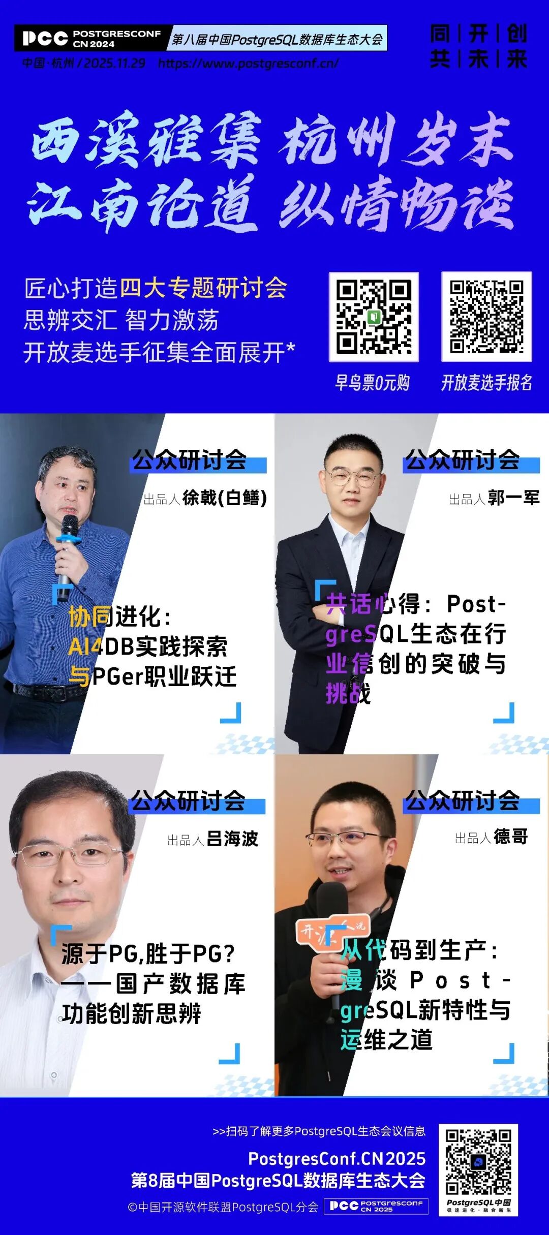 更详细的,我会在29号PG生态大会中“源于PG、胜于PG”研讨会中讨论: