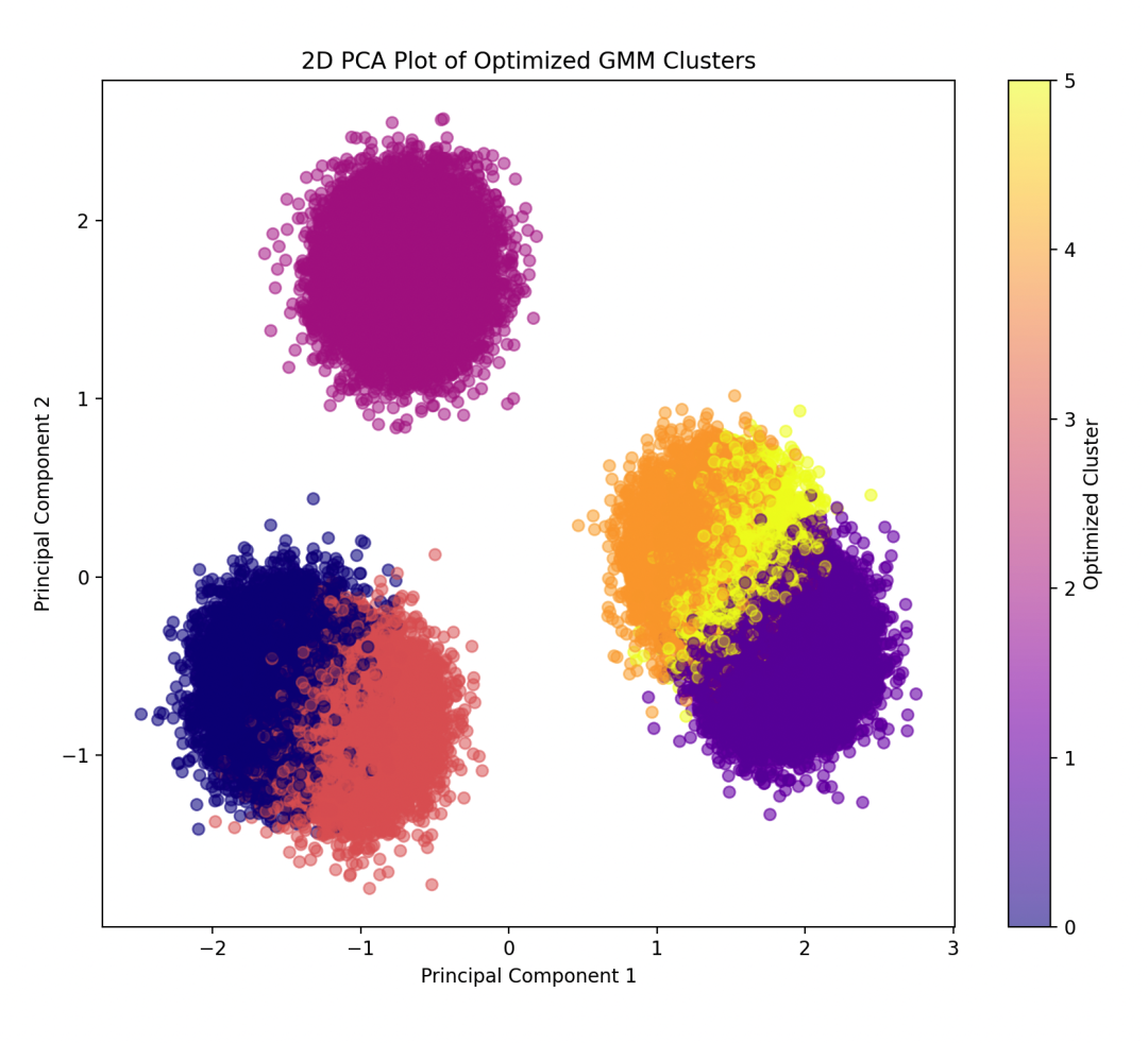 optimized_gmm = GaussianMixture(n_components=best_n_components, covariance_type='full', max_iter=500, n_init=10, random_state=42)