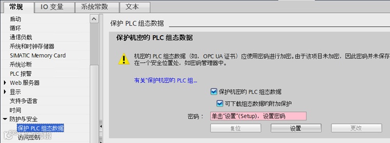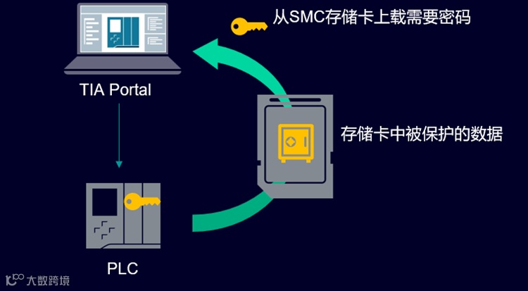在现有的保护机制基础上,增加了额外的安全特性,可以保护下载到存储卡中的PLC组态数据,在直接从存储卡上载项目时,需要输入相应的密码。