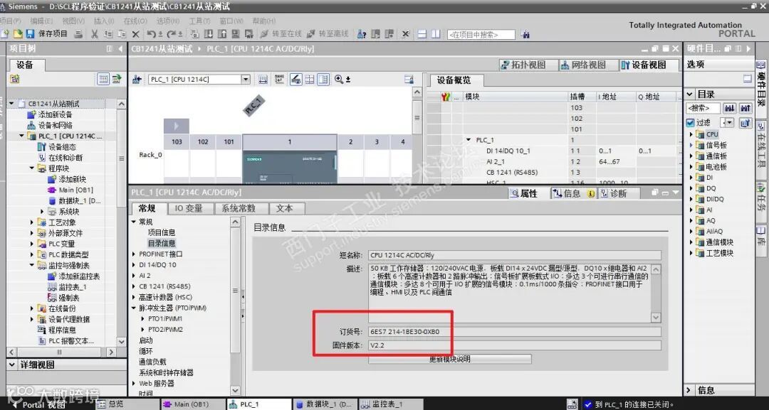 1) 组态cpu,图示:CPU S7-1214C,版本 V2.2