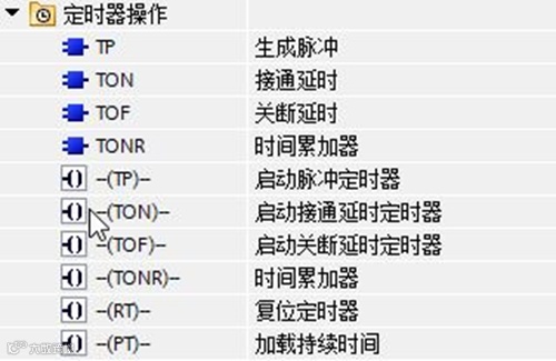 定时器指令用于实现时间控制功能,常见的定时器指令包括:
