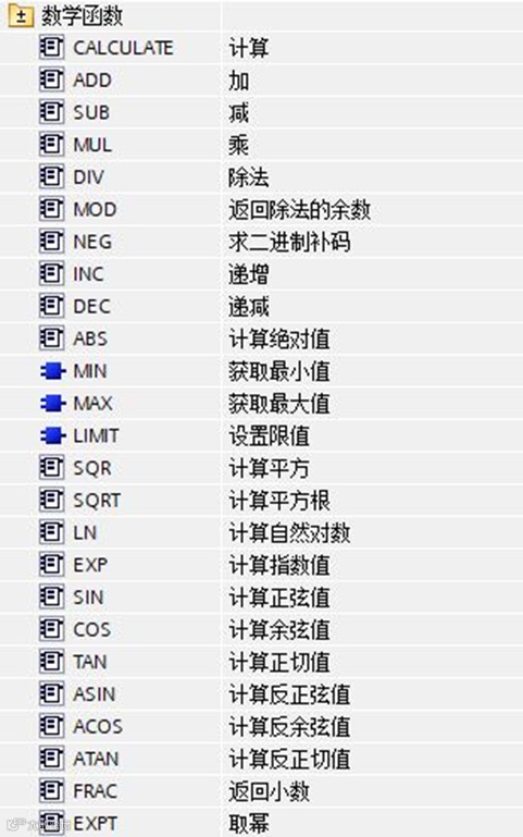 数学函数指令用来对操作数进行数学运算,常见的数学函数指令包括:
