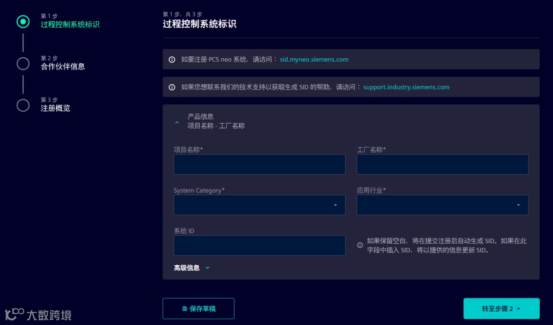 注意:PCS 7 SID 注册使用的账号和 PCS neo SID 注册使用账号并不完全通用 (如希望使用同一账号登录,则需在 My PCS neo 使用同一邮箱再次注册 PCS neo 账号)。