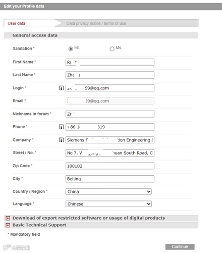 如果已经在西门子工业在线支持网站 (SiePortal) 注册,则可以使用注册的邮箱和密码登录。注意是邮箱和密码,不是用户名和密码登录。