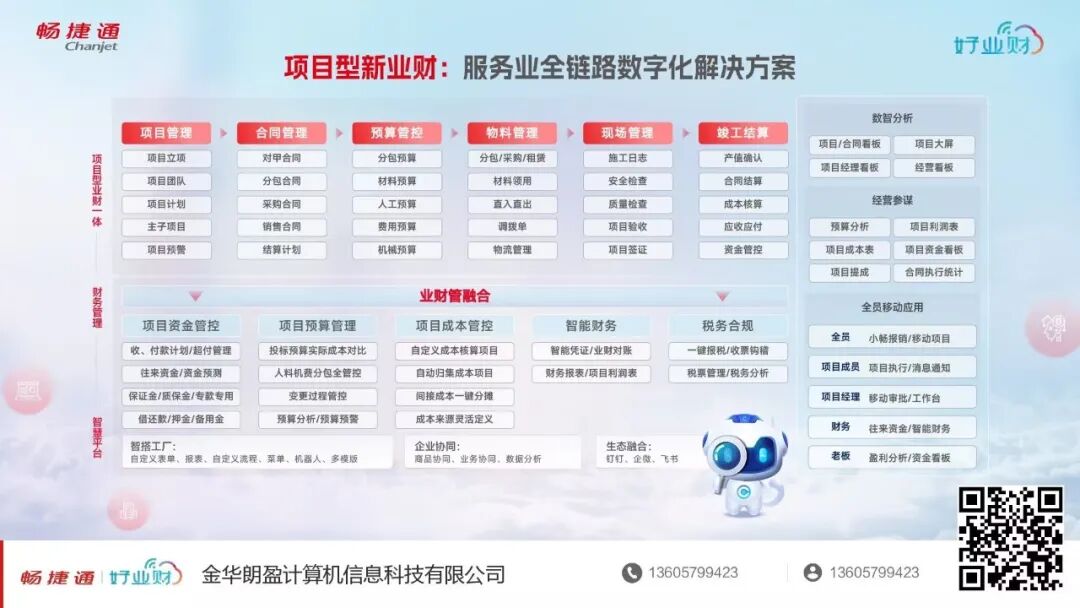 金华朗盈信息化【项目型新新业财】好业财通过整合项目管理、合同管理、财务管控、智能分析、移动协同,助力项目型企业构建透明、高效、可预测的智能运营体系。