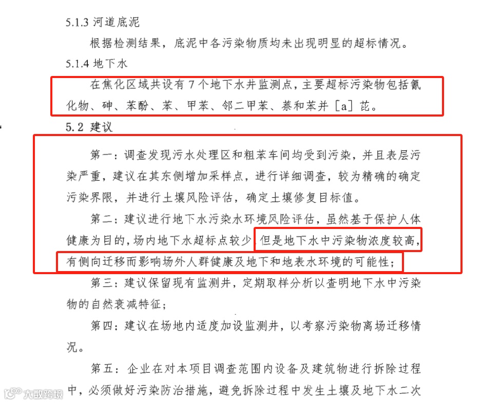 这份初步调查报告提示:“表层污染严重、地下水污染物浓度较高、有侧向迁移而影响场外人群健康的可能性。”
