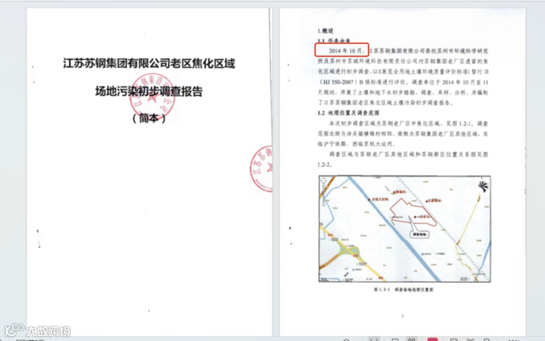 2个月后,苏钢集团委托第三方对老厂区《江苏苏钢集团有限公司老区焦化区域场地污染初步调查报告》,两家第三方机构正是此次诉讼的另外两位被告:苏州市环境科学研究所、苏州市苏城环境科技有限责任公司。