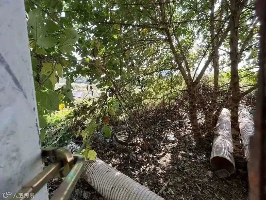▲受污染地块内,堆放有多根切割的污水管