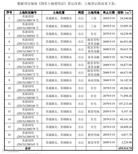 绿岸地产拥有苏地2008-G-6号地块上的17块国有建设用地使用权,其中包括6块住宅用地、两块教育用地、4块商办用地以及社区中心、加油站、办公用地等,当时17块地均为“拟建”状态。