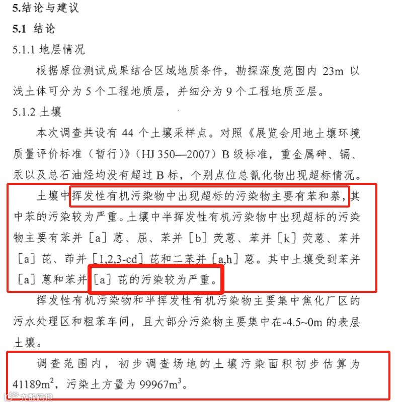 而并非公开资料所称:“最终确定0-18米深度内,污染范围为17542平方米,污染土方量为39604立方米。非焦化区域的土壤和地下水基本未受到污染,可再开发利用。”